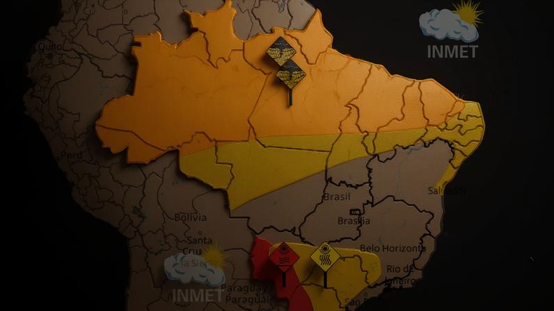 Por último, no Sul, Paraná, Santa Catarina e Rio Grande do Sul estão sob alerta vermelho por conta da onda de calor. As temperaturas para esta região flutuam entre 13°C e 27°C, refletindo um quadro de calor intenso.