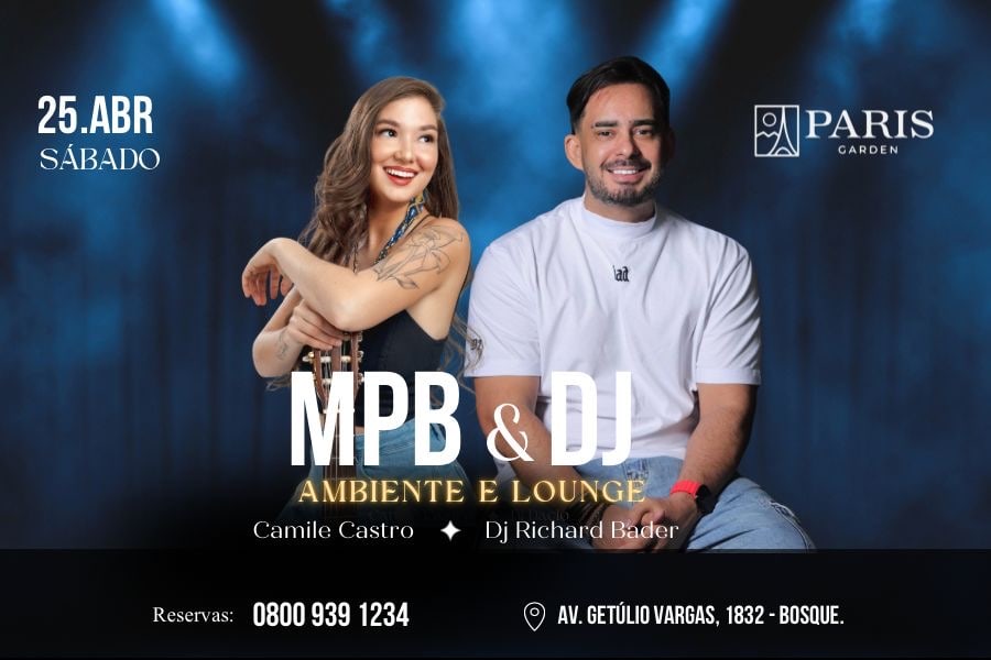 Localizado na famosa Avenida Getúlio Vargas, nº 1832, no bairro Bosque, o Paris Garden é reconhecido por suas iniciativas que misturam gastronomia e música em um espaço sofisticado. A proposta desta noite temática é proporcionar uma experiência de entretenimento voltada para aqueles que desejam relaxar e se divertir em um ambiente acolhedor. A combinação do som envolvente da MPB, sob a interpretação de Camile Castro, com as batidas eletrônicas do DJ Richard Bader, promete agradar a um público diversificado.