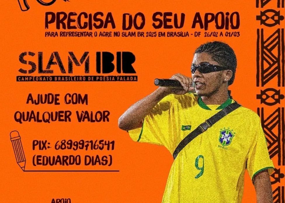 O Acre tem se destacado no cenário nacional com sua rica produção poética, e neste ano, essa força se manifestará na maior competição de poesia falada do Brasil. Dudu de RB, o atual campeão do Slam no Acre, foi escolhido para representar o estado no Slam BR 2025, que ocorrerá em Brasília entre os dias 26 de fevereiro e 1º de março. Essa é uma oportunidade única para mostrar o talento e a voz da poesia acreana ao público nacional.