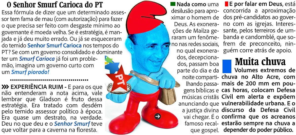 Essa situação levanta questionamentos sobre a gestão pública, especialmente em temas ligados à saúde, que assim como a estrada, parece estar à mercê de soluções que nem sempre são eficazes. E por falar em BR-364, é interessante refletir sobre como seria hoje a famosa caravana, que na década de 2000 era animada pelo hit “Vixe! Que chic! Ele só anda de Mitsubishi”, do saudoso Sérgio Taboada. Narciso Mendes, figura emblemática daquela época, ainda está presente e poderia trazer novas dinâmicas para o cenário político.